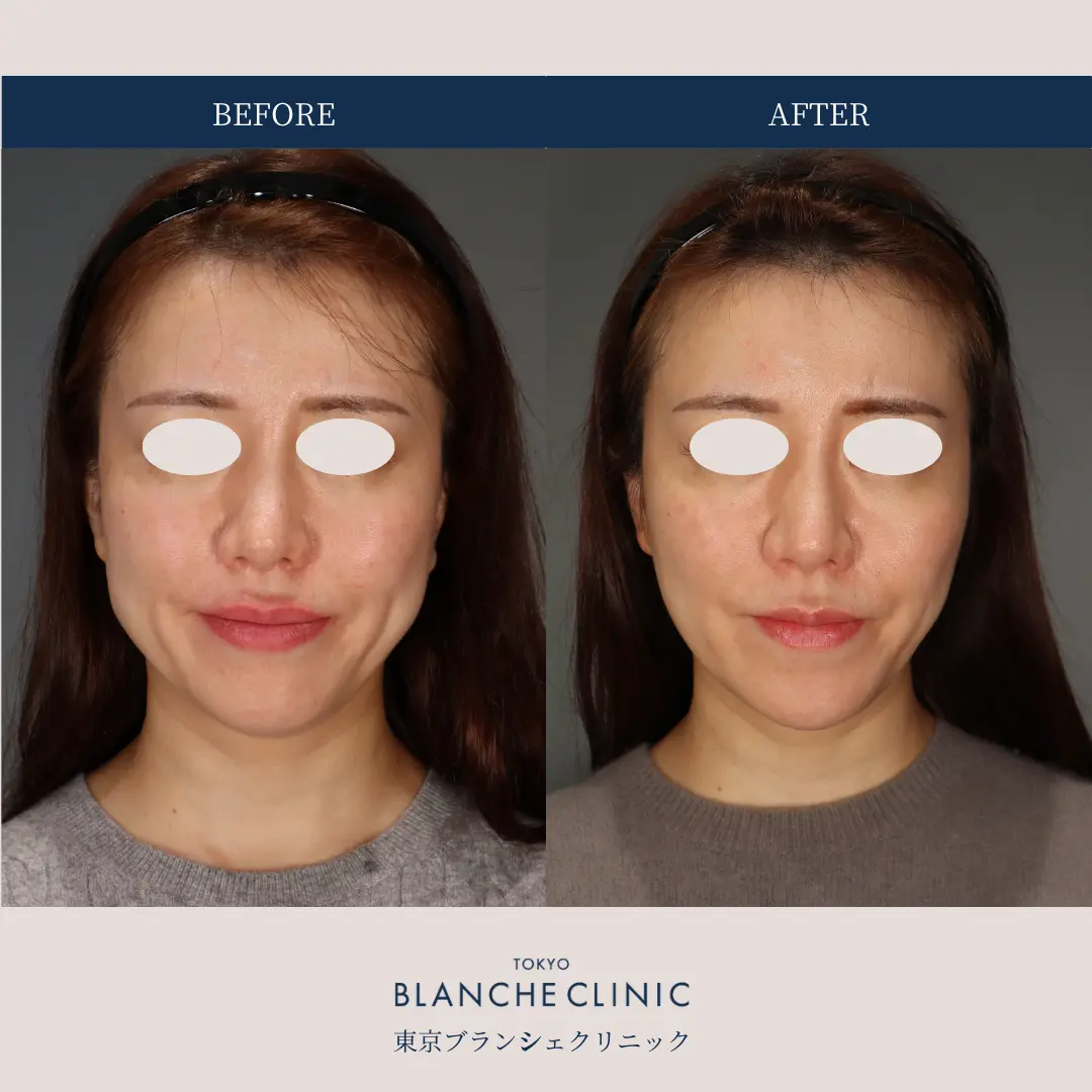 ボトックス_症例4 治療名エラボトックス(アラガン社)30単位回数・期間1回(約1ヶ月後)リスク腫れ、内出血、アレルギー、表情の違和感費用50,000円(税込) ボトックスの施術ページはこちら WEB予約はこちら