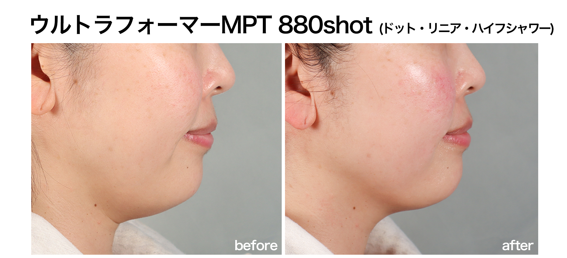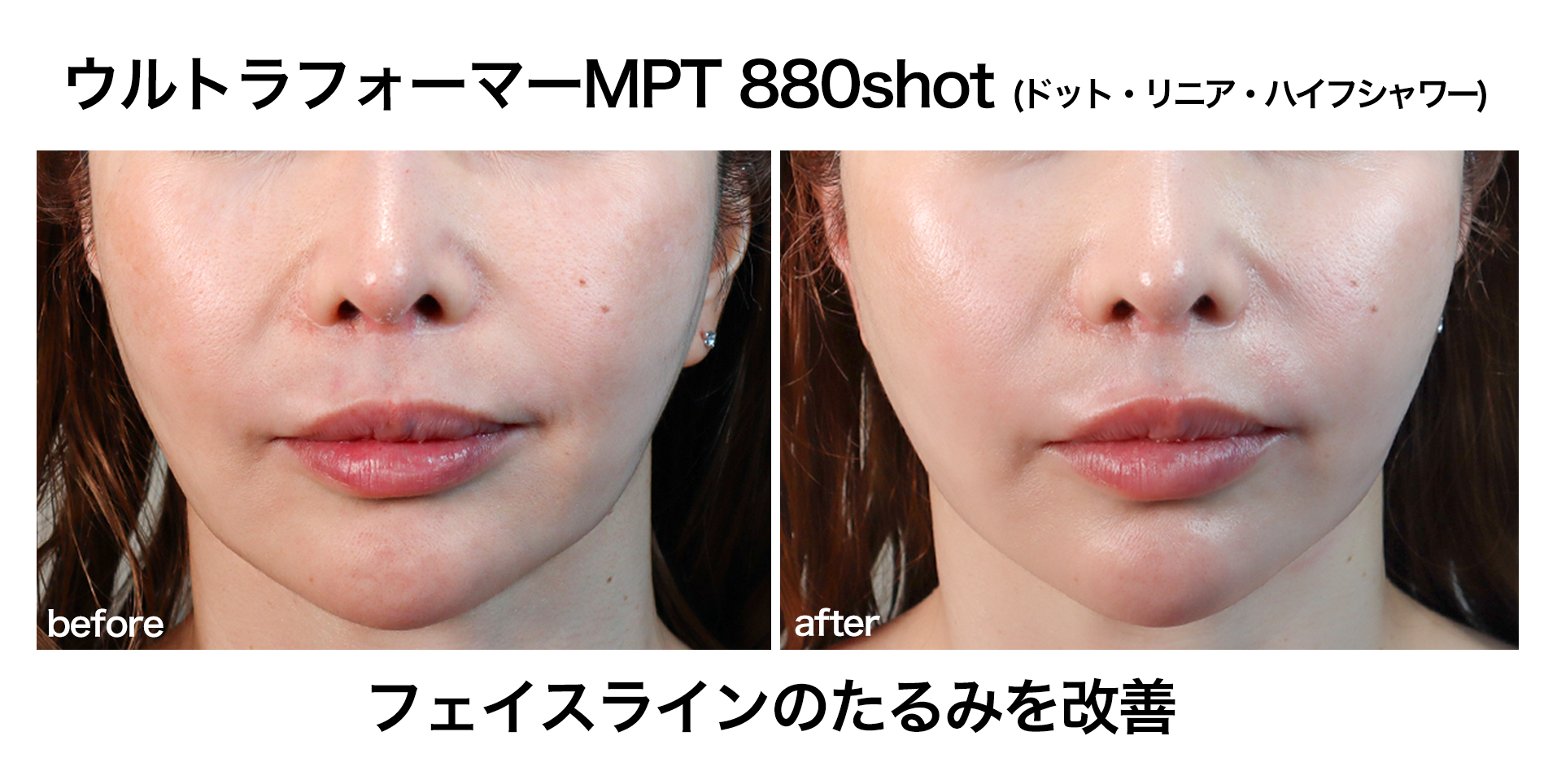 施術内容:ウルトラフォーマーMPT 全顔+顎下+首 880shot