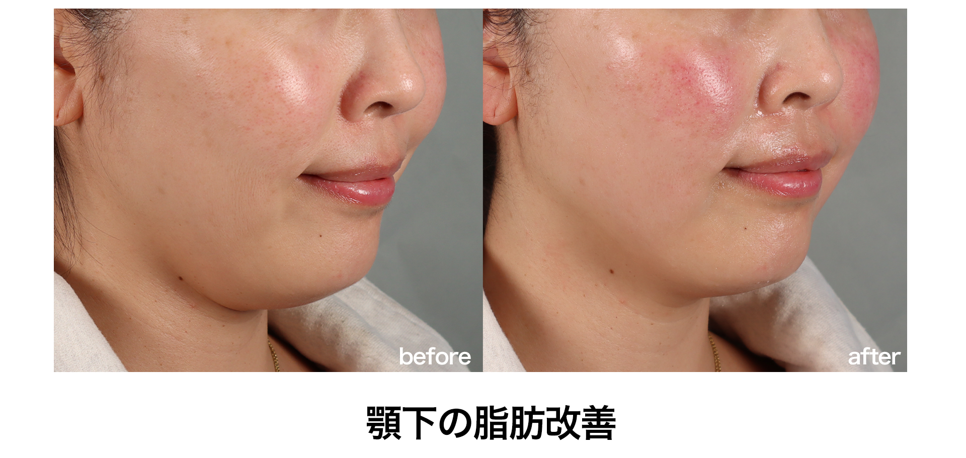 60℃以上の熱を加えるとお肉を焼くと縮むのと同じ原理で、肌内のタンパク質が変性して組織が縮みます。たるんだ皮下組織やSMAS筋膜が縮むことで、肌の引き締めやハリにアプローチしてくれるため、即効性を感じやすいです。