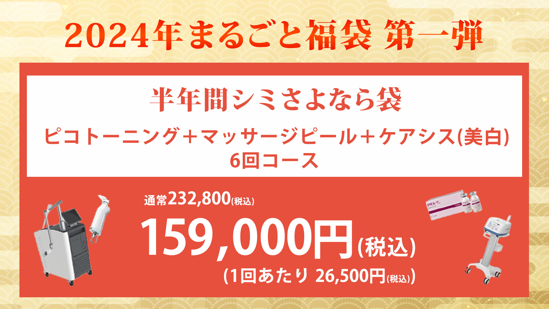 ・「半年間シミさよなら袋」「半年間毛穴レス袋」の使用期限は2024年8月までとなります。コース未消化分の返金対応は承りかねます。
