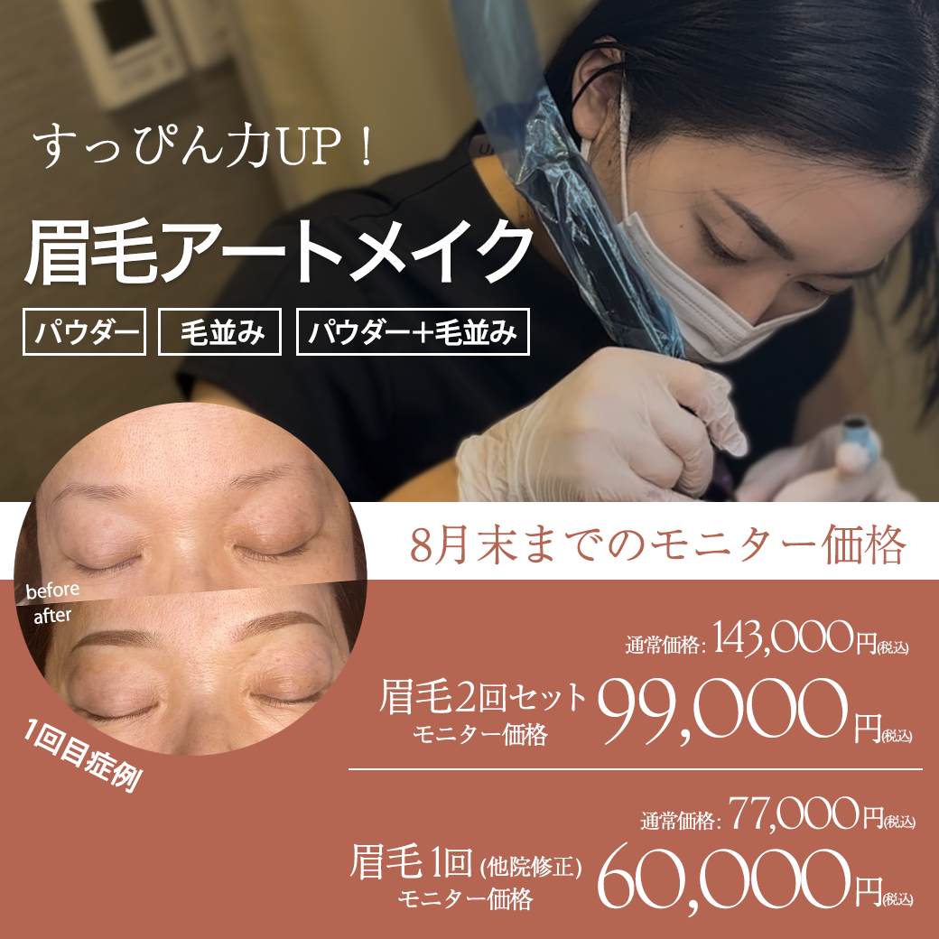 アートメイクの持続期間は、個人差はございますが、2〜3年程度です。