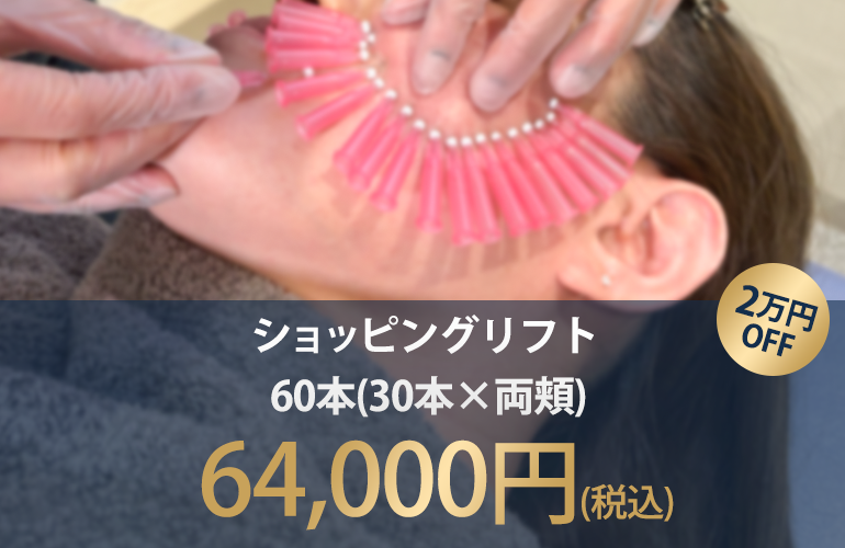 ショッピングリフトは美容鍼のような特殊な極細の糸を皮下に挿入し、ほうれい線などの頬のたるみ・口元のたるみ・小ジワの改善を目指す治療です。