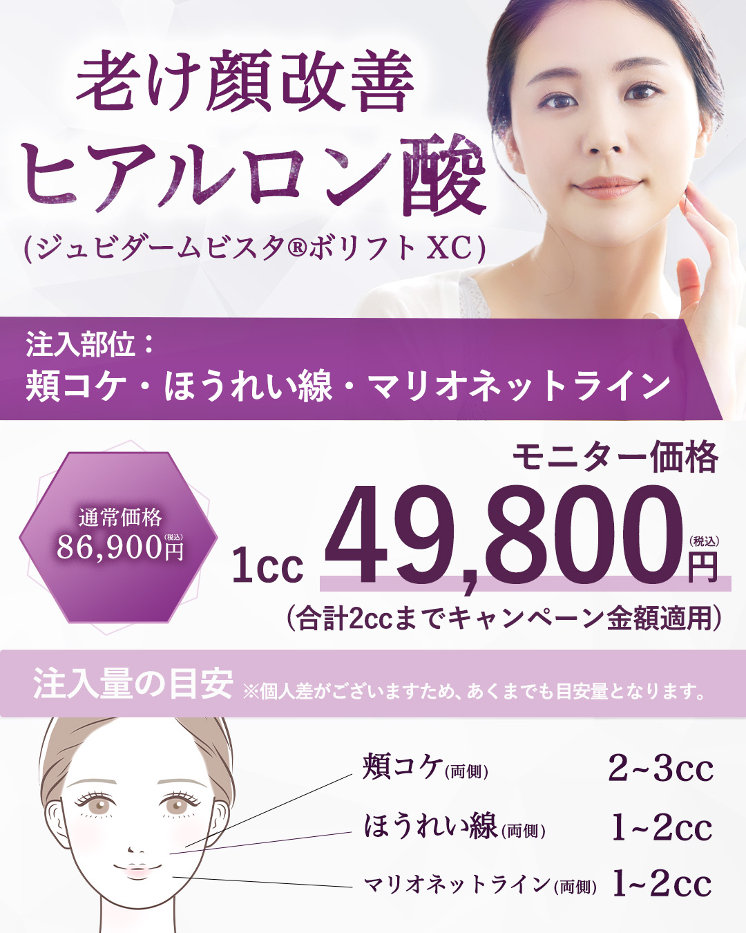 【老け顔改善】ヒアルロン酸モニター(ジュビダームビスタ®ボリフト XC)のモニター様を1cc 49,800円(税込)で募集いたします!(通常価格:1cc 86,900円(税込))