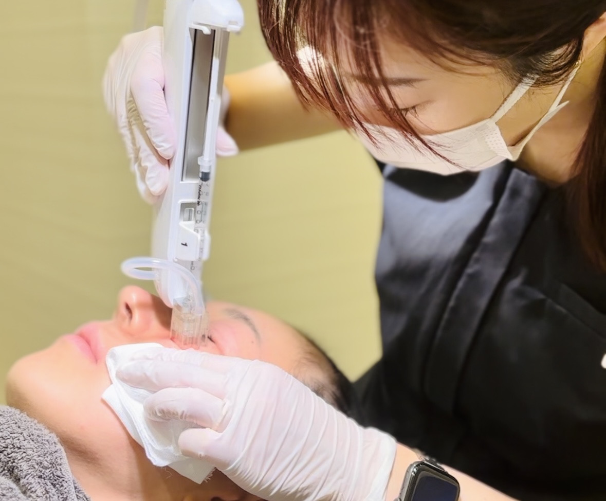 今回のキャンペーンでは水光注射を使用してジュベルックをお肌へ導入します。水光注射は有効成分を表皮〜真皮層内に全体的に細かく注入する美肌治療機器です。