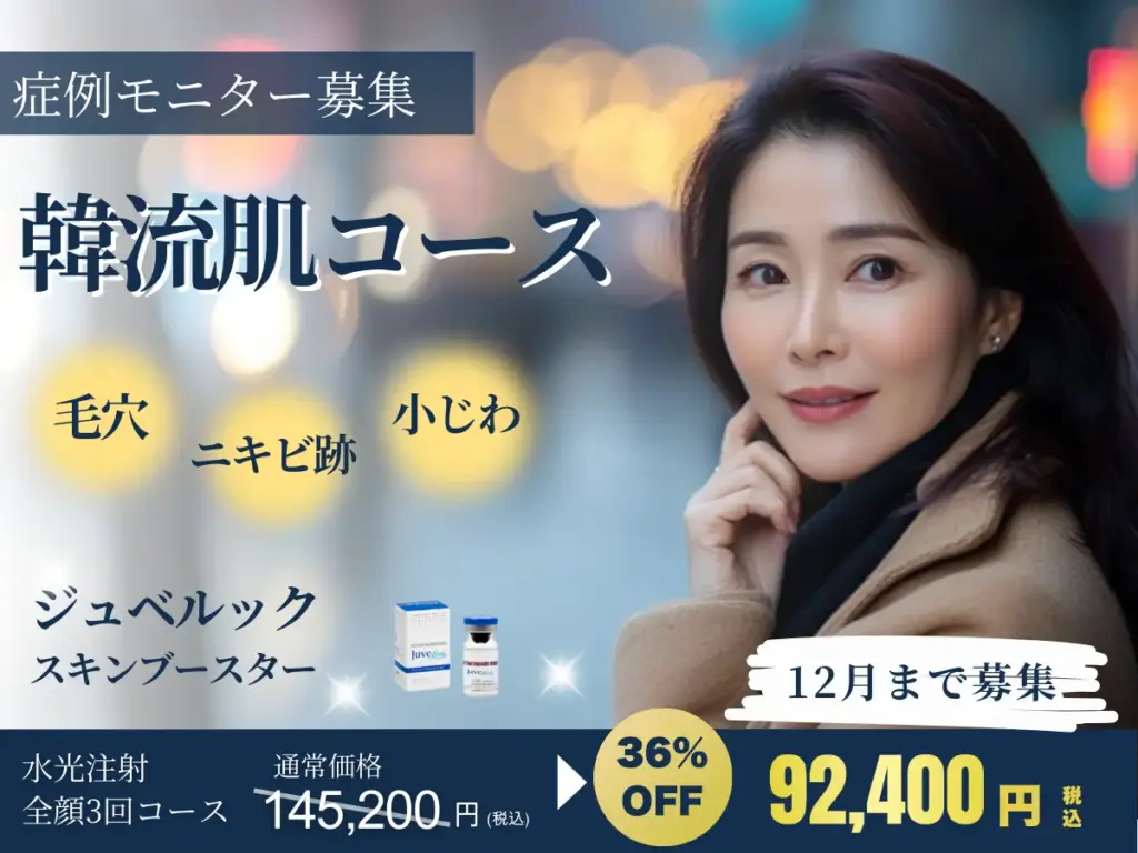 今回のキャンペーンでは水光注射を使用してジュベルックをお肌へ導入します。水光注射は有効成分を表皮〜真皮層内に全体的に細かく注入する美肌治療機器です。