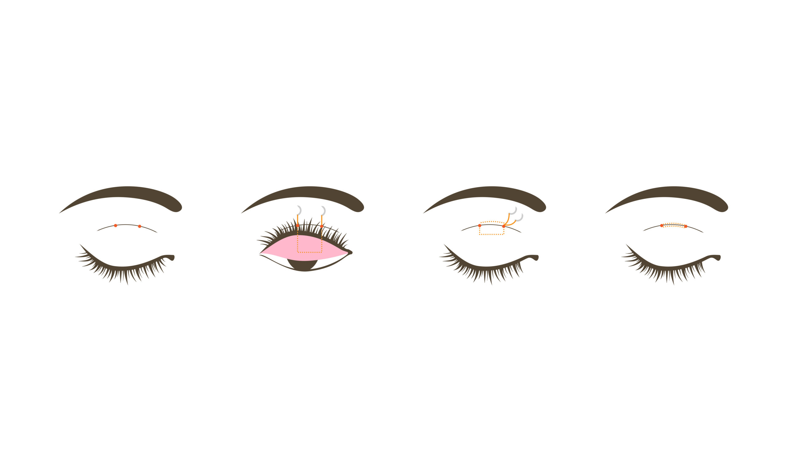 二重埋没法は、二重にしたい位置に糸を掛けて二重の仕組みを作る手術です。メスで切開を行わない“切らない”二重整形で、この糸が外から見えないように瞼の内部に埋没させてしまうことから「埋没法」と呼ばれています。二重埋没法により、年齢を重ねてたるんで狭くなってきた二重のラインを広げ、若々しい目元へ導きます。