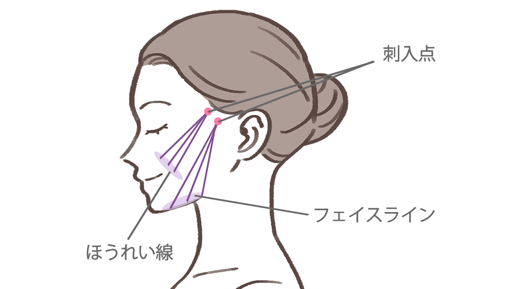 針の跡も目立たず、ダウンタイムも比較的少なく治療いただけます。
