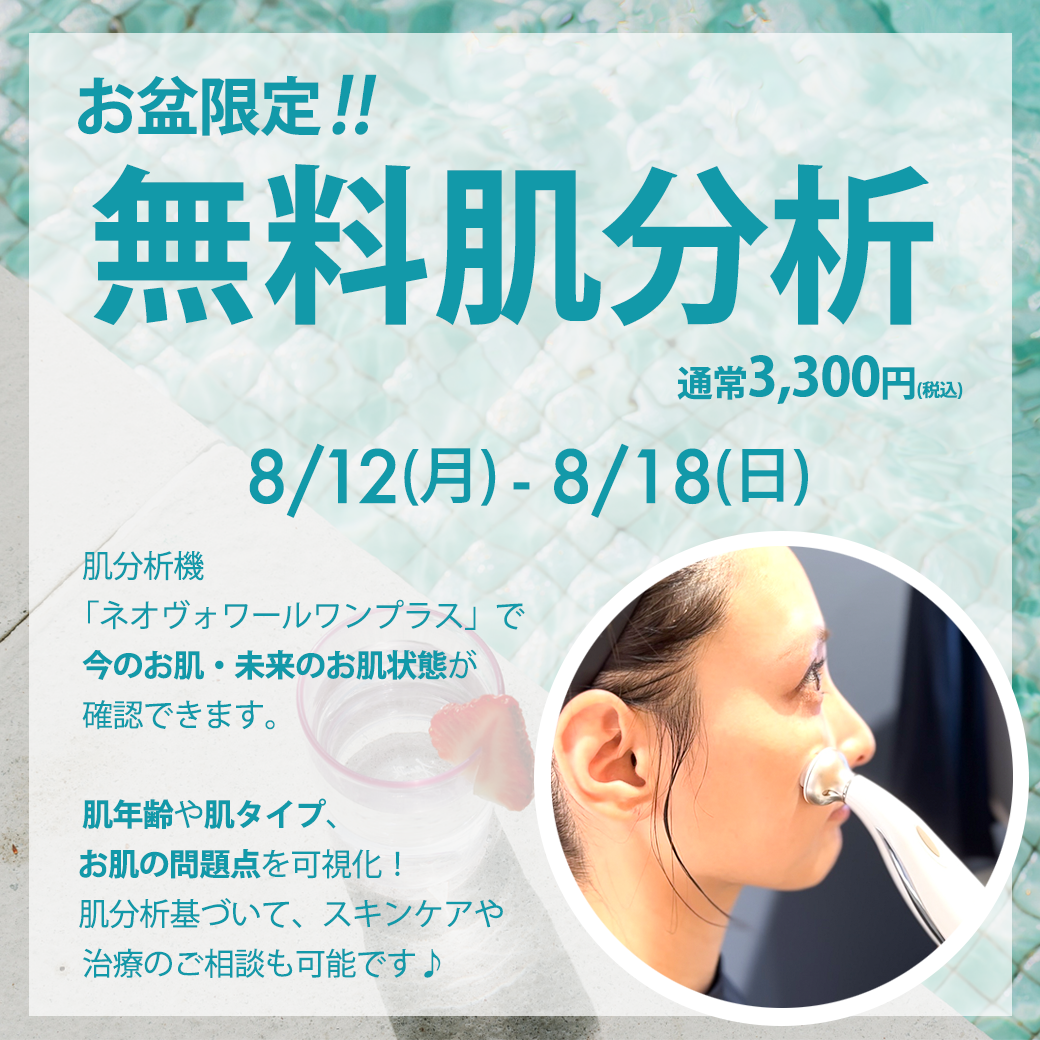 通常3,300円(税込)の肌分析(ネオヴォワール)をお盆限定で無料で実施いたします!!